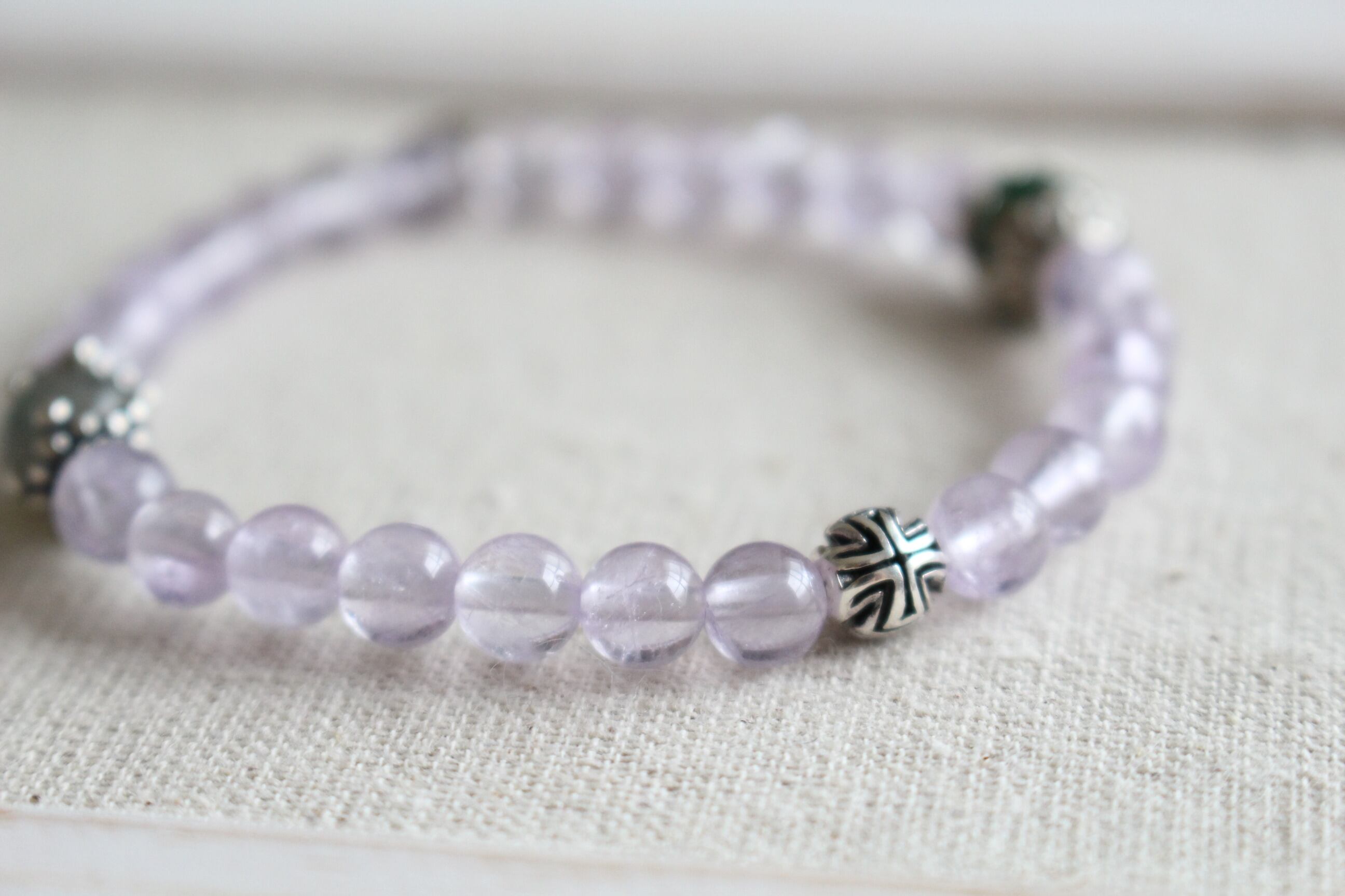 愛の守護石、心の絆や真実の愛を守り抜く石などと呼ばれるアメジストを使った、男性にも女性にもお使いただけるブレスレットです。