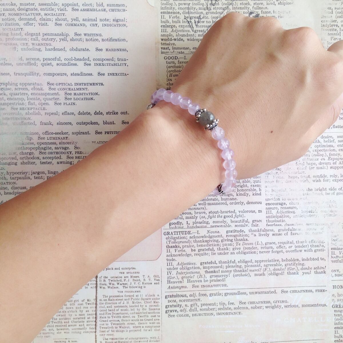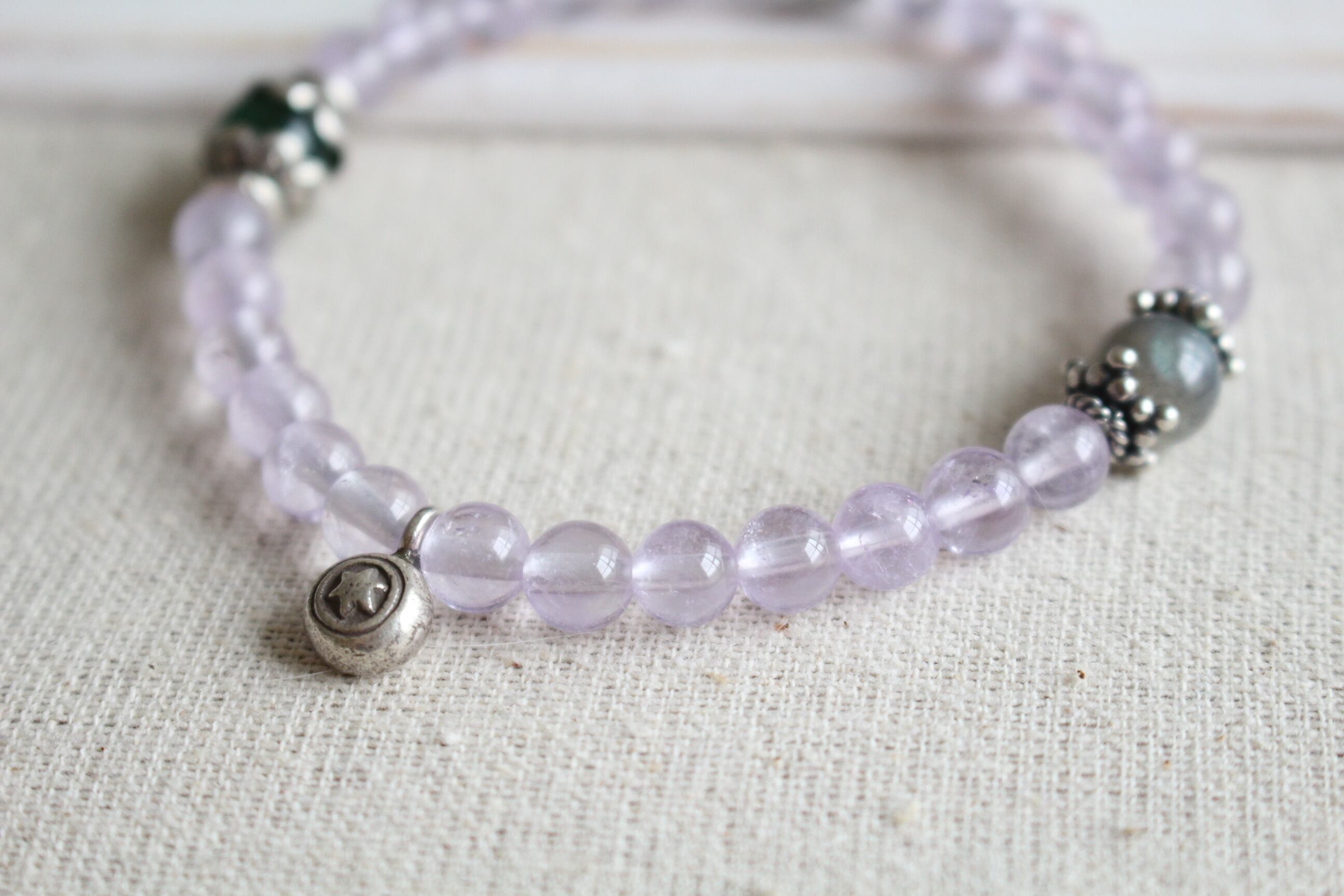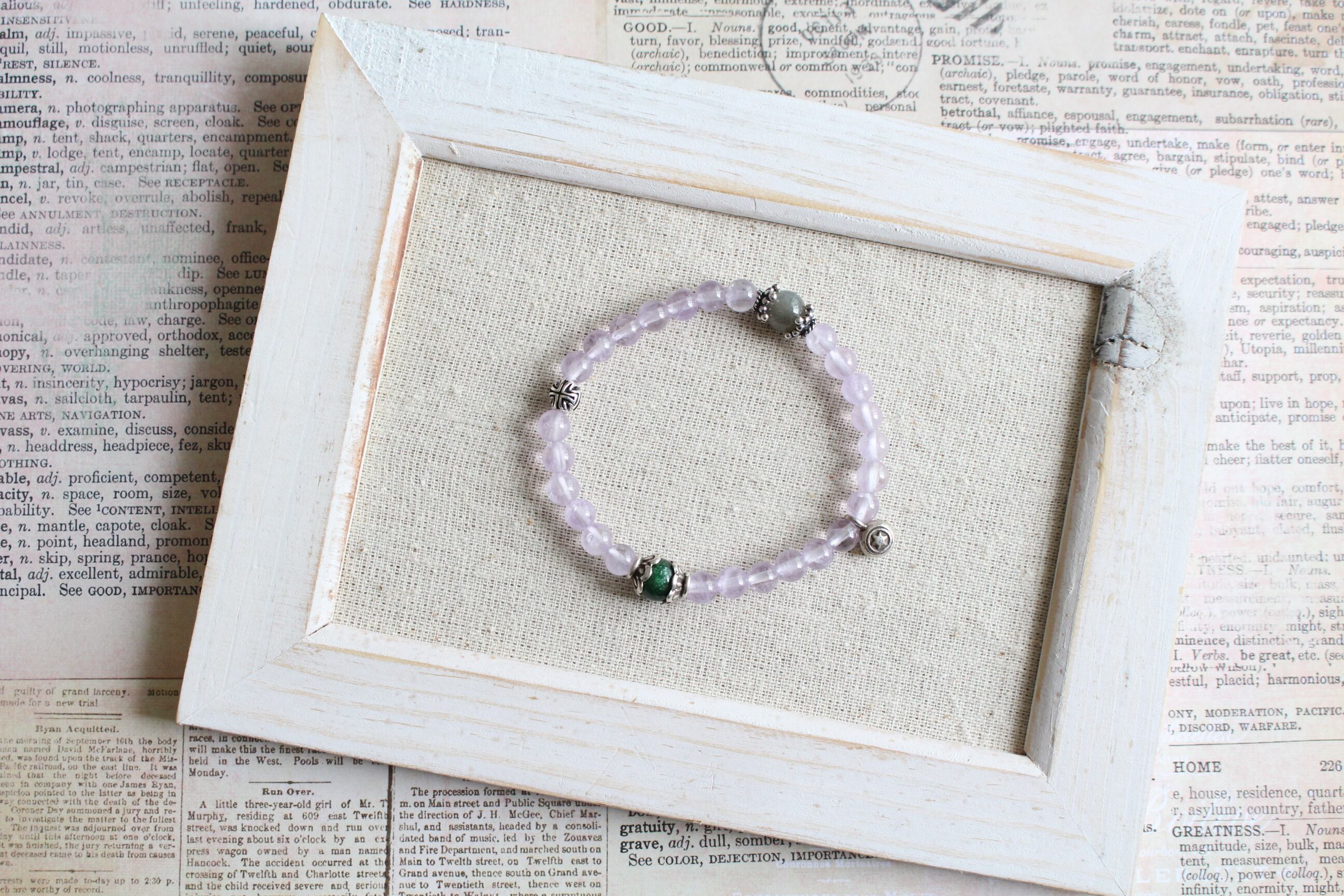 アメジスト、グリーンアベンチュリン、ラブラドライト、カレンシルバー、スーパーアンタロン(ゴム)