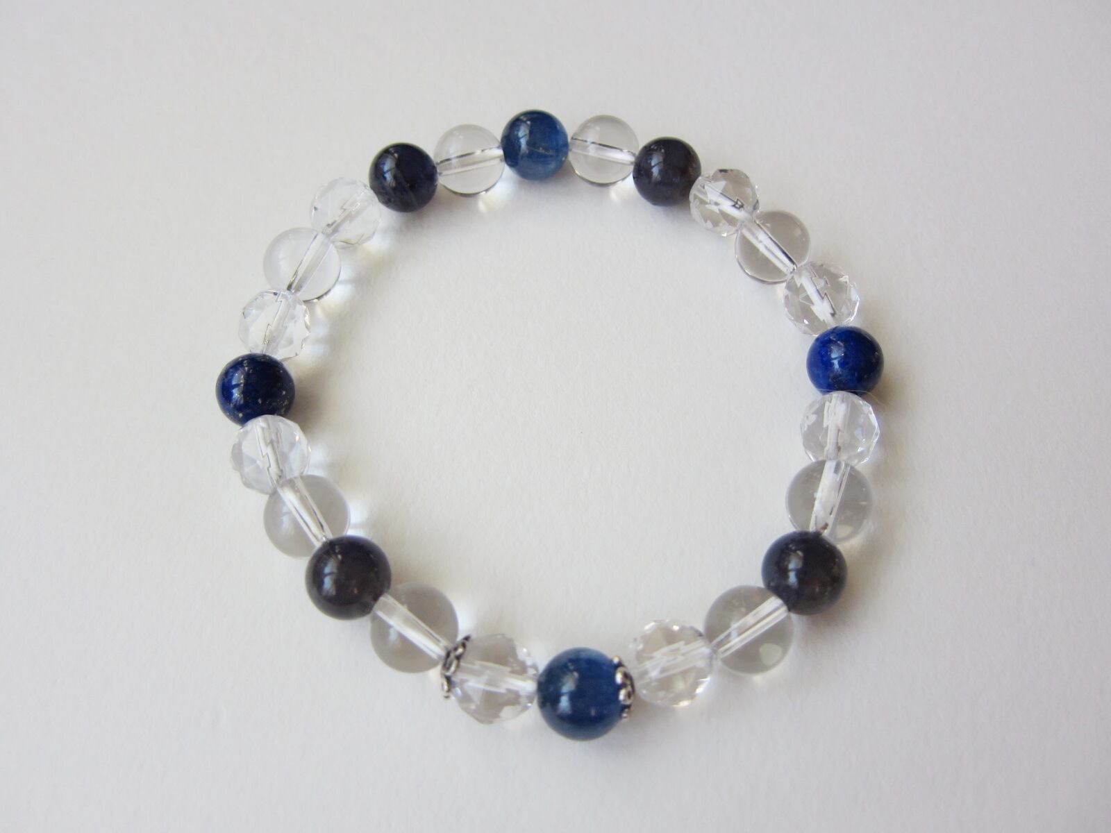 ラピスラズリ、アイオライト、カイヤナイト、クリスタルクォーツ、シルバー925 シリコンゴム