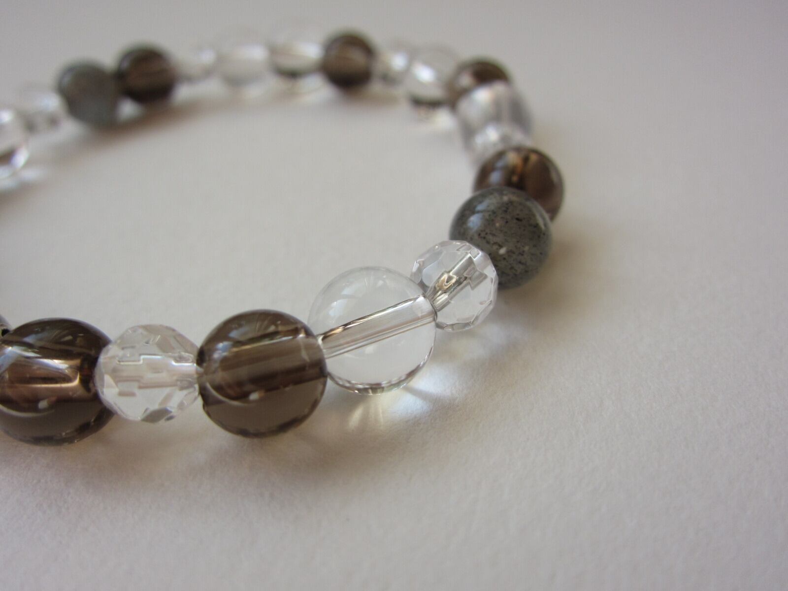 虹色に光る美しいグレーのラブラドライトに、水晶の中でもパワーの強いスモーキークォーツを合わせたシックな落ち着きのあるパワーブレスレットを作りました^^