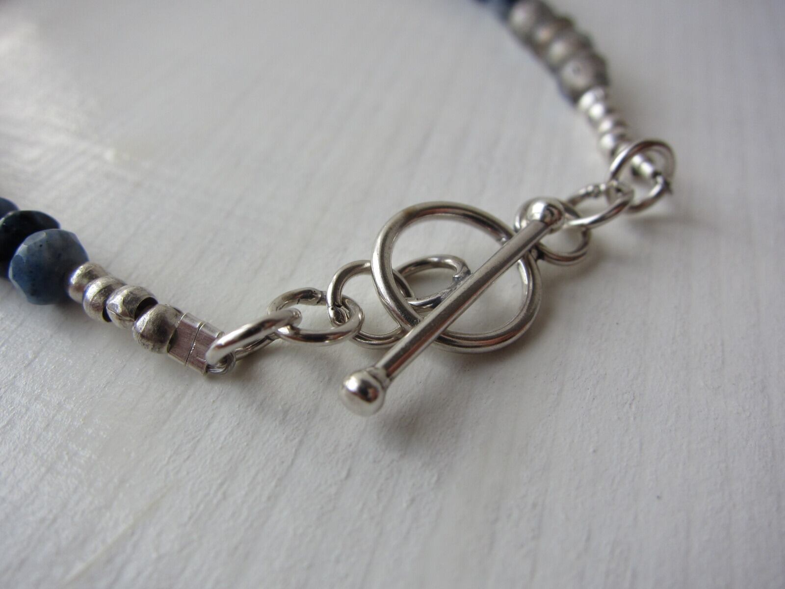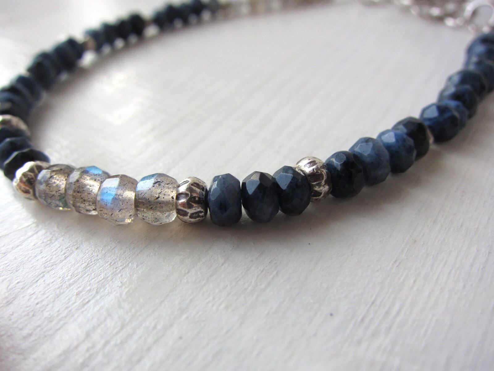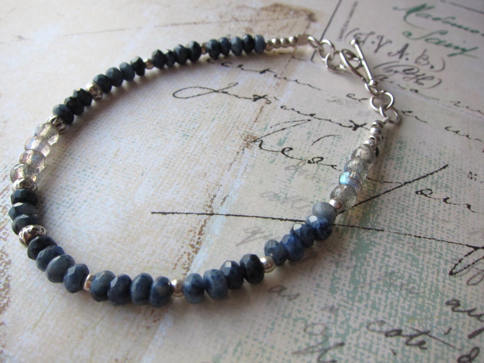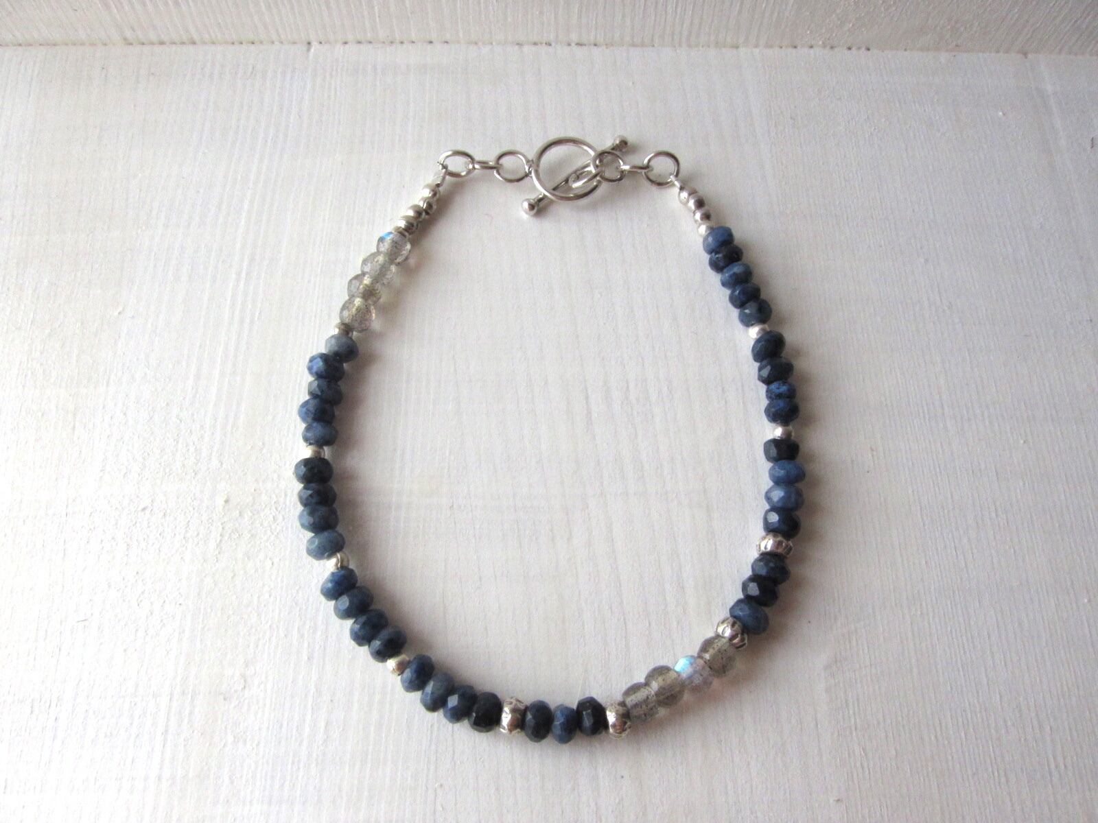 デュモルチェライトというとても深みのある綺麗なブルーの石に、最高品質のラブラドライトとカレンシルバーを合わせた大人の雰囲気のあるブレスレットが完成しました!