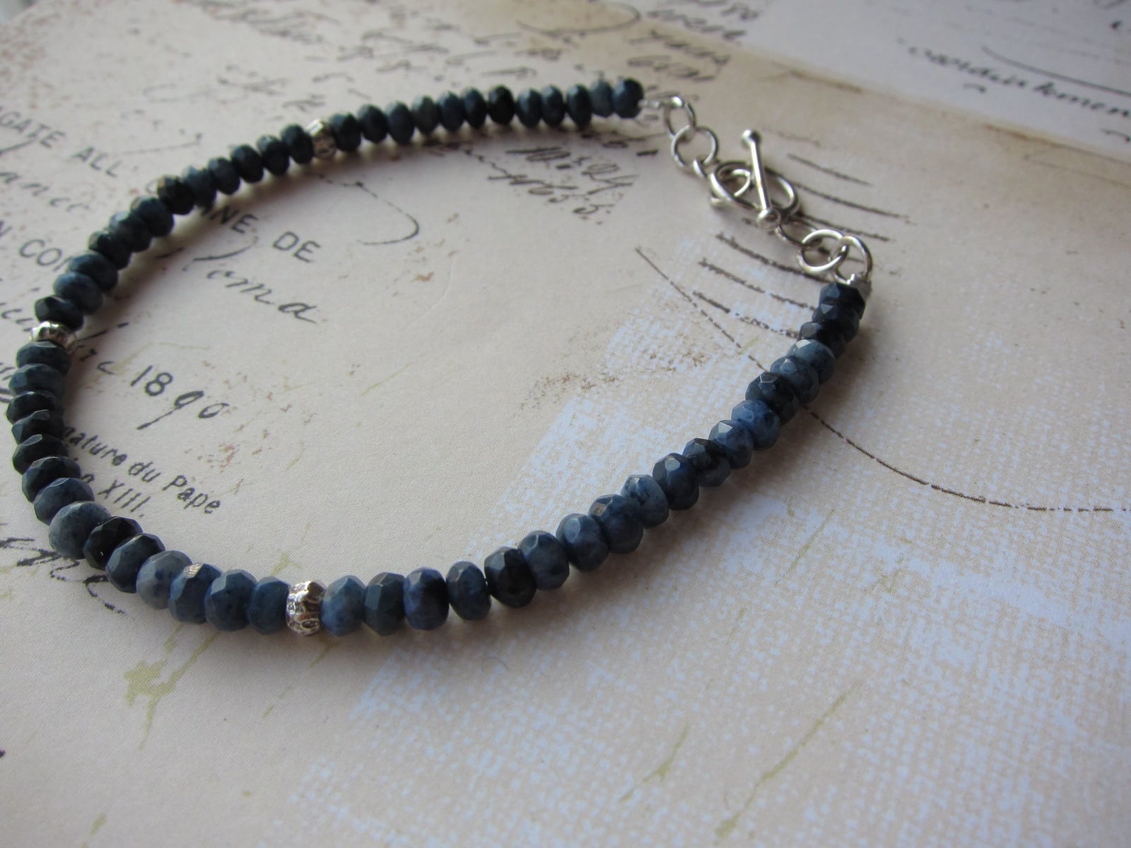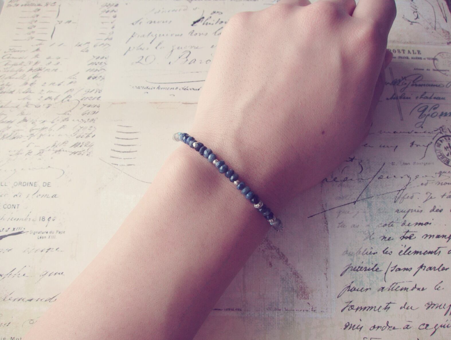 デュモルチェライトという深みのある綺麗なブルーの石に、カレンシルバーを合わせたシンプルなブレスレットです!