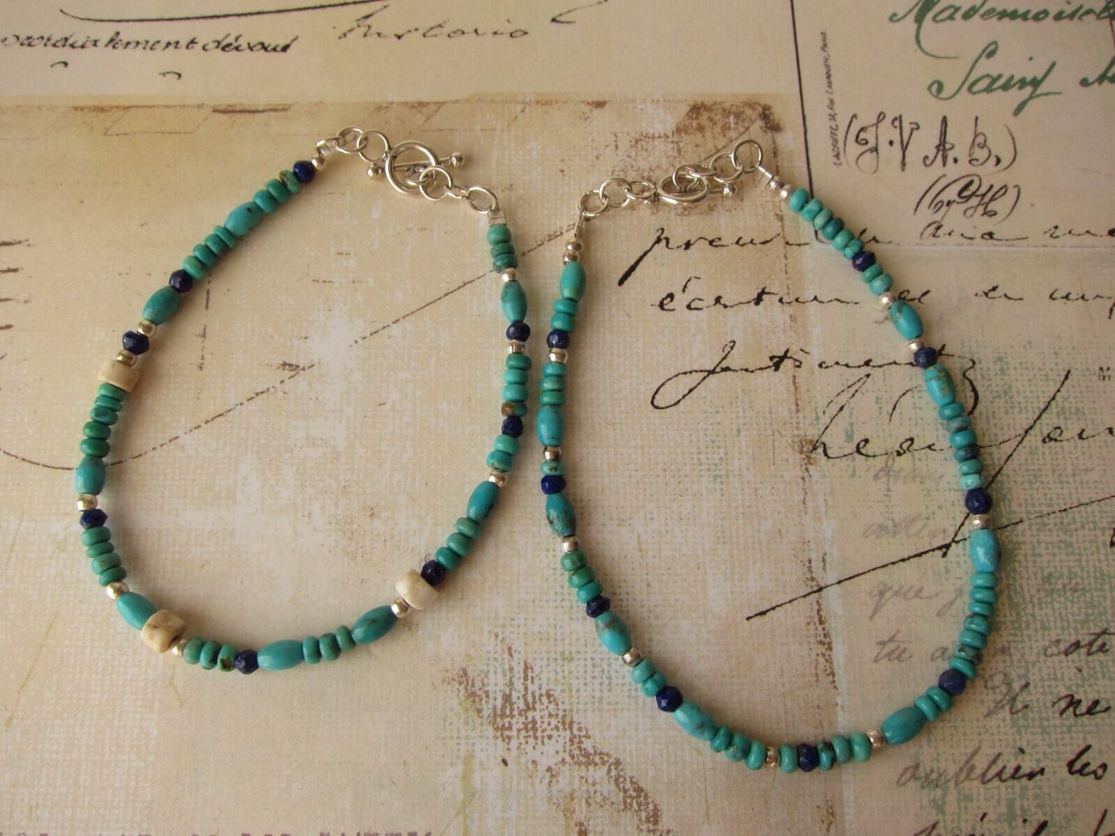 天然のターコイズに、ラピスラズリ、マグネサイト(Aのみ)、カレンシルバーを組み合わせたとてもパワフルなブレスレットです!