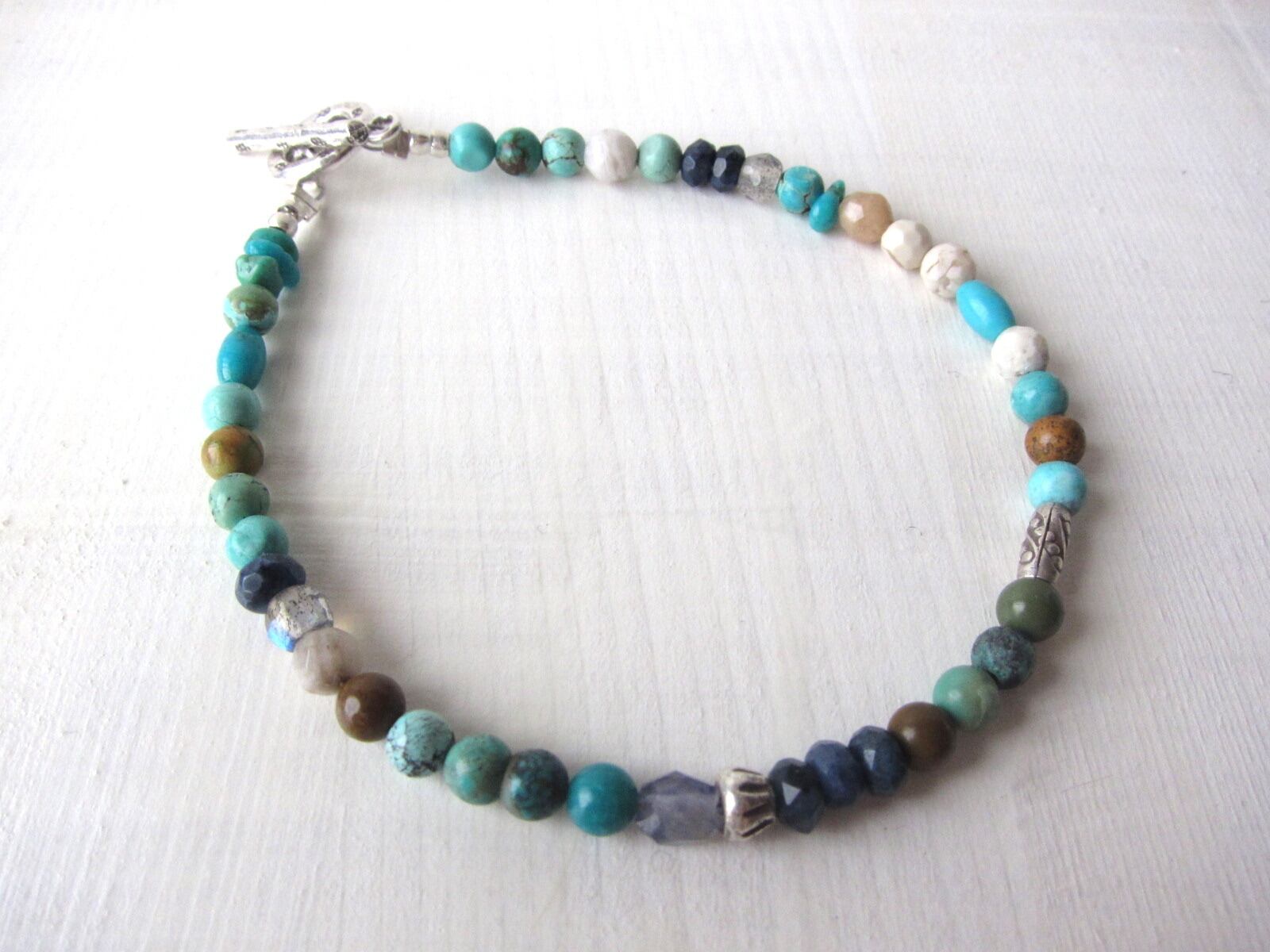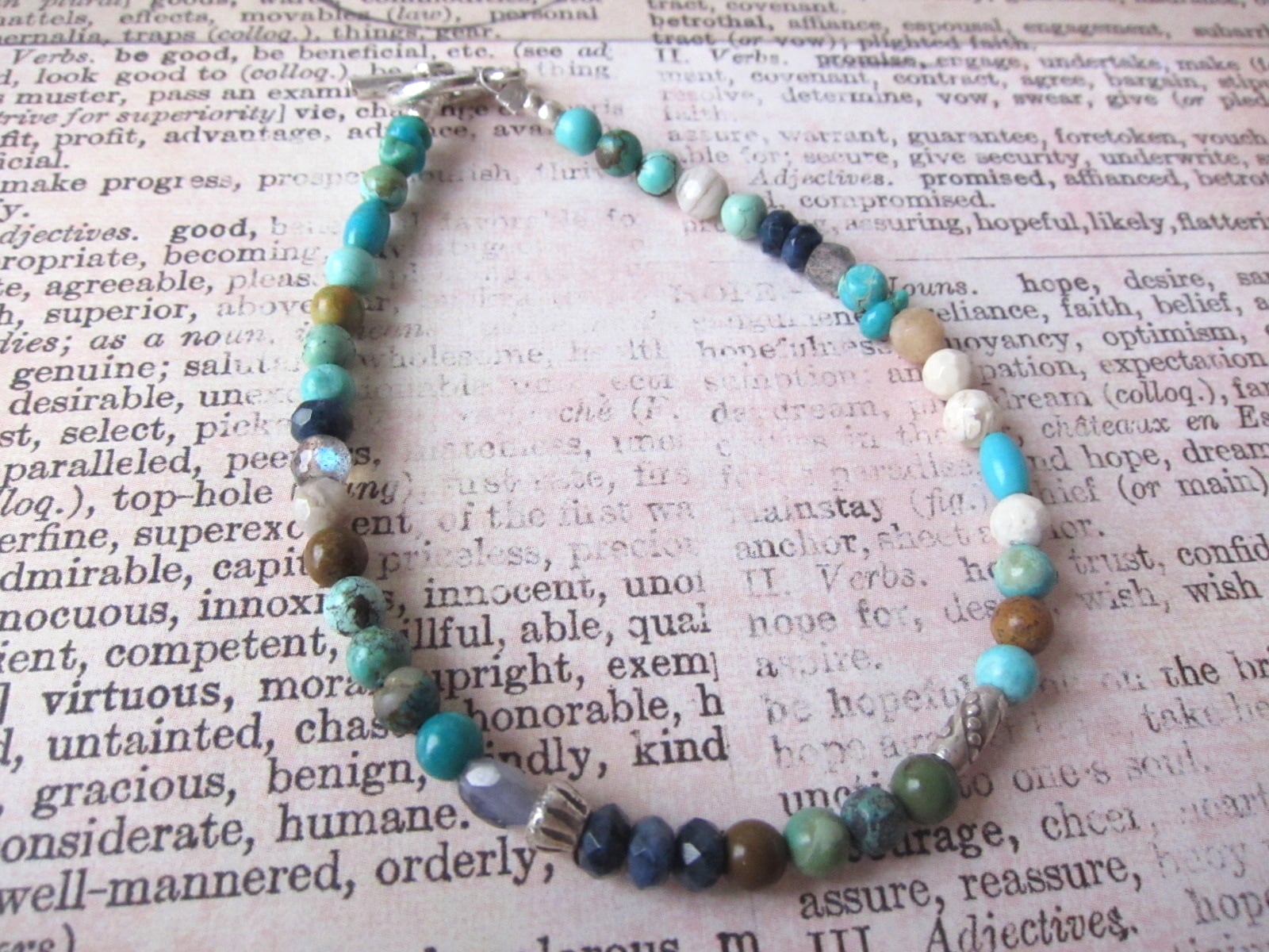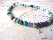 天然ターコイズをメインに、アイオライト、アフリカンオパール、ラブラドライト、デュモルチェライト、カレンシルバーを組み合わせたとてもパワフルなブレスレットです!