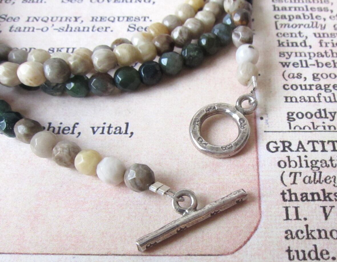 ブラウンやクリーム色が綺麗なフォシコーラルをメインに、深みのあるグリーンのインディアンアゲートを使ったアクセサリーです!