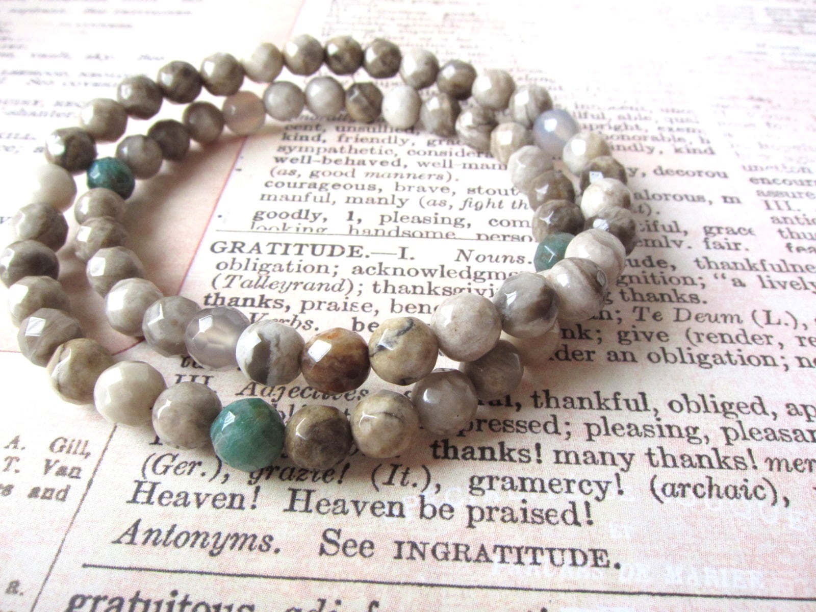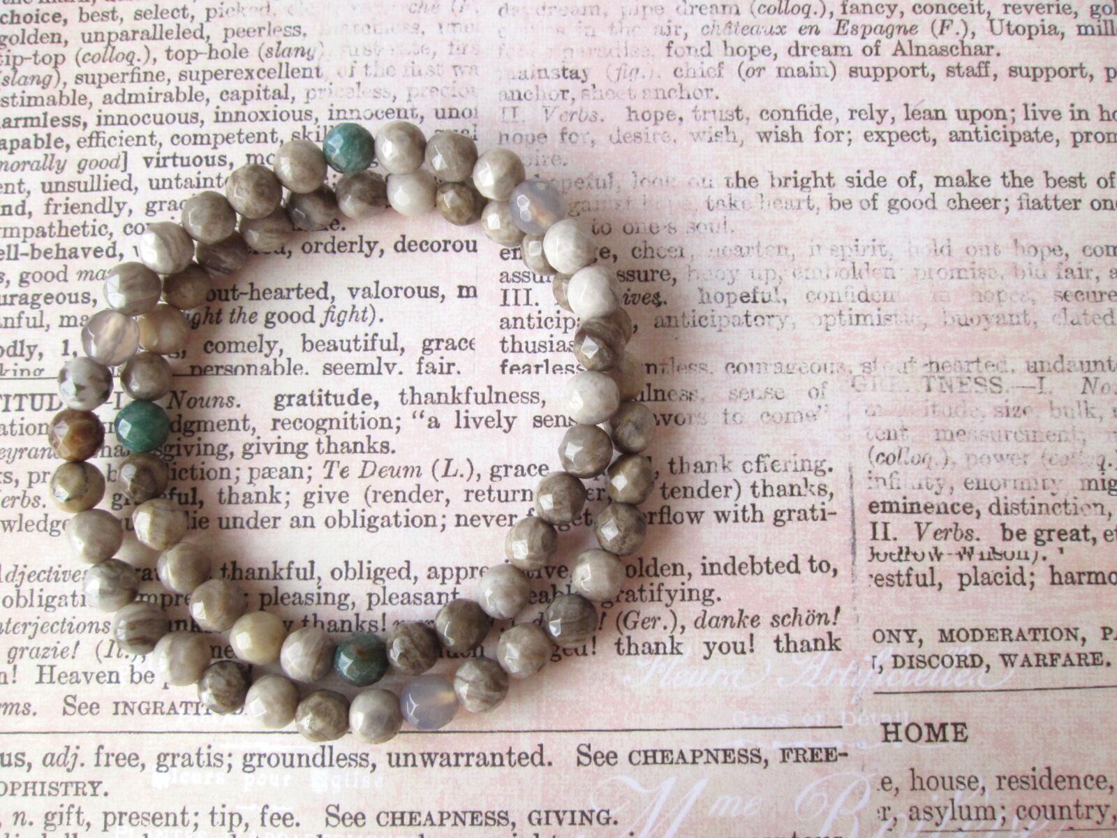 ブラウンやクリーム色の肌馴染みの良いカラーが特徴のシルバーリーフジャスパーをメインに、とても深みのある綺麗なグリーンドラゴンブラッドジャスパー、スモーキークォーツ、カレンシルバー(Mサイズのみ)をアクセントに合わせた2連ブレスレットが完成しました!